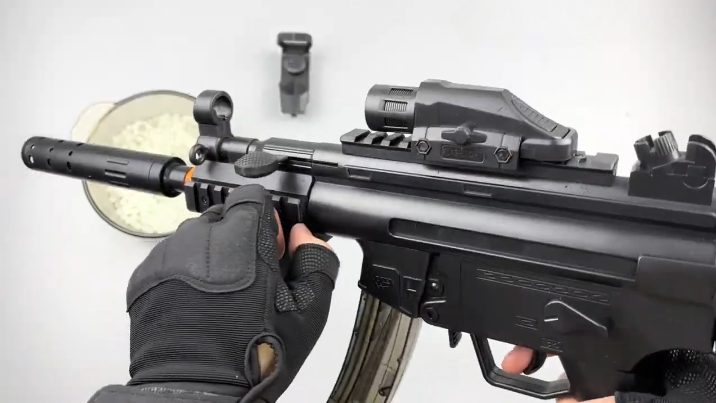 is crafted from premium materials that ensure durability and longevity. The robust construction mimics the classic MP5 design, providing an