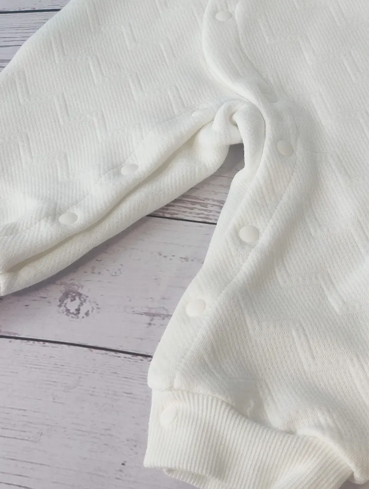 Newborns are often sensitive to temperature changes, and the thick quilted fabric of this romper ensures that babies are kept warm and cozy in cooler months. The quilted design provides insulation, making it ideal for the colder seasons. Whether you're taking your little one out for a winter walk or need an extra layer to keep them warm at home, this jumpsuit offers the perfect solution.
