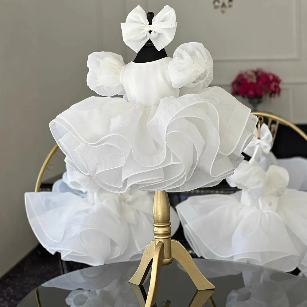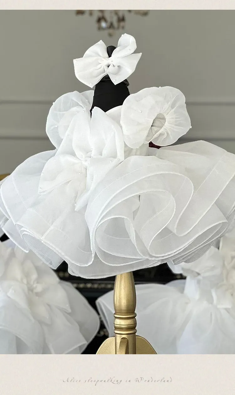 The bubble sleeves add a playful and elegant touch to this stunning princess dress, creating a classic silhouette with a touch of modern style. Your little one will look adorable and feel confident in this unique design.