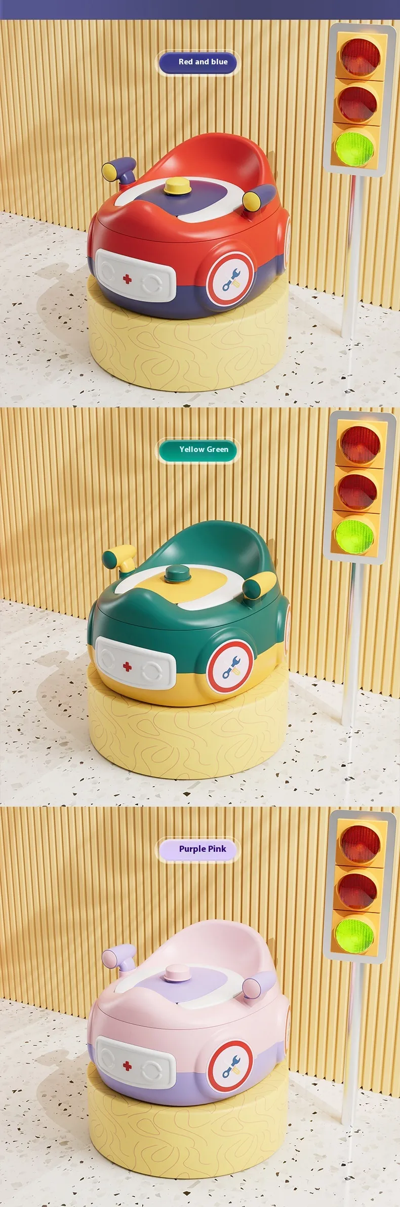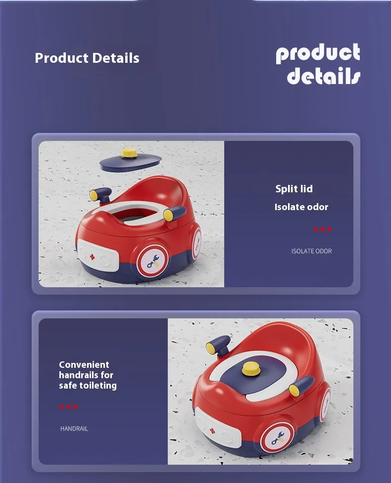 Adjustable Height: The car-shaped potty urinal is designed with adjustable height to accommodate children of different ages