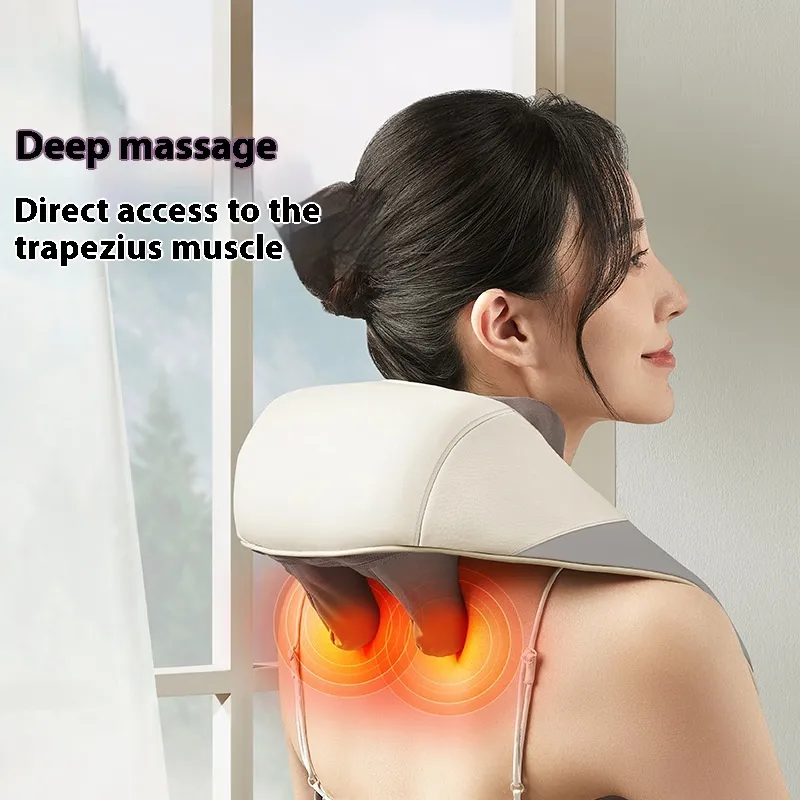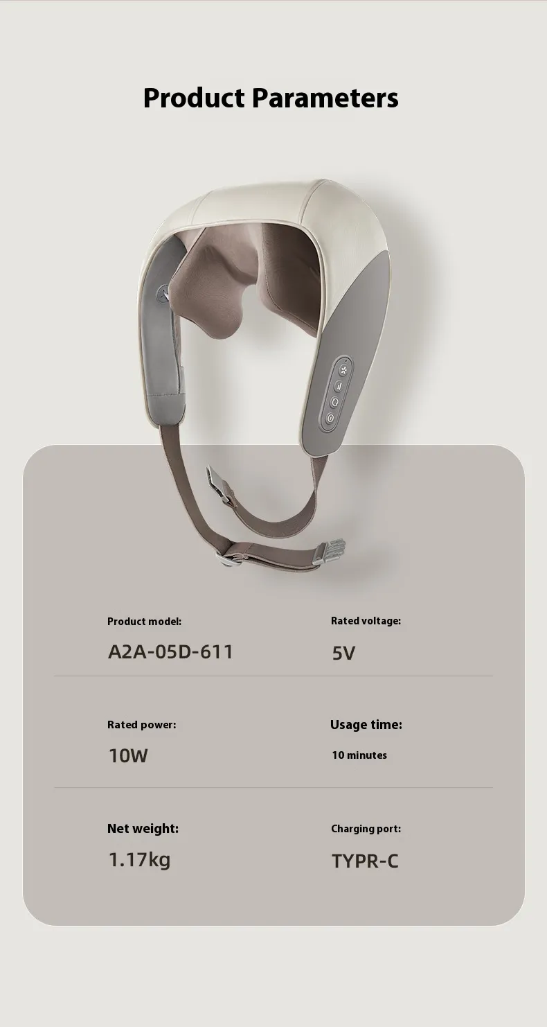 The massager's ergonomic design ensures a comfortable fit around the neck and shoulders, providing effective coverage for targeted areas.