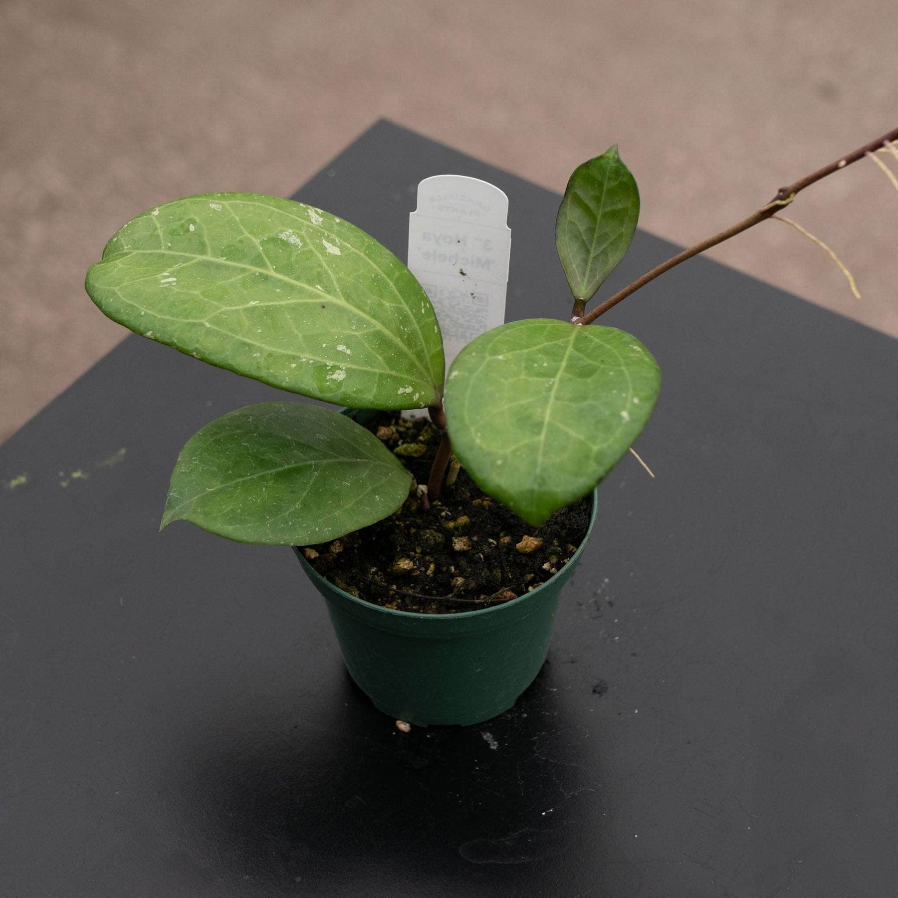 The Hoya 'Michele' is an exquisite addition to any plant collection, renowned for its striking foliage and robust growth habit. This captivating Hoya variety boasts thick, glossy leaves adorned with a unique pattern of speckles and splashes, making it a true visual delight.