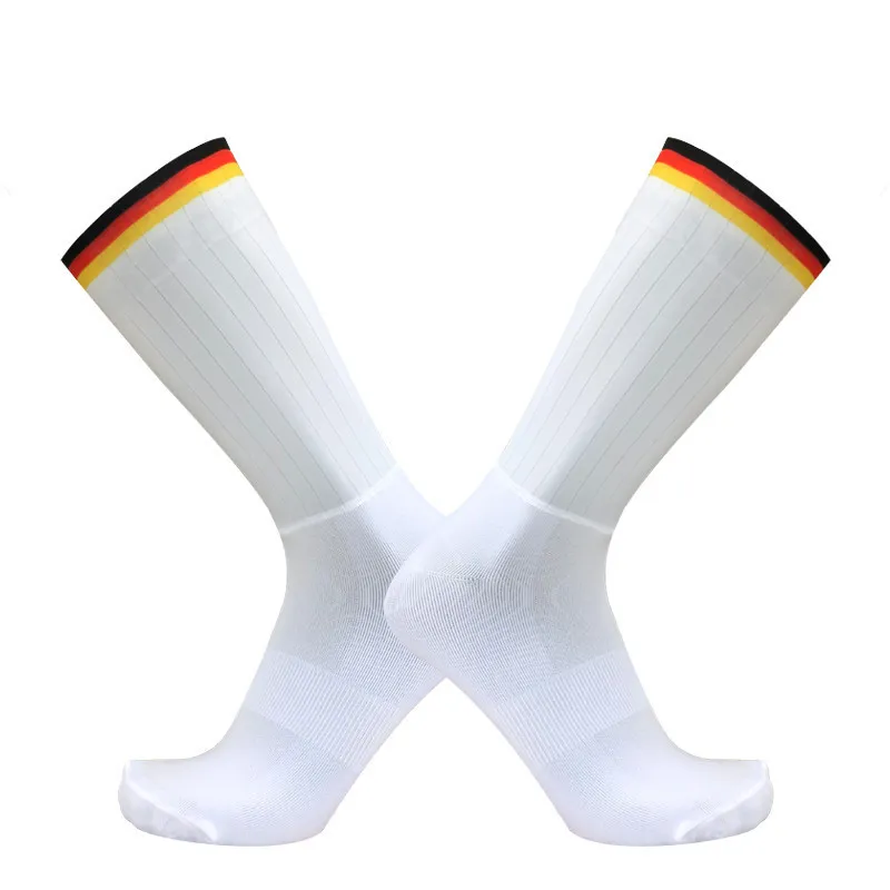 These socks feature silicone non-slip grips on the bottom, designed to keep your feet secure inside your cycling shoes. This ensures that your feet won't slide, providing more stability and control during your ride.