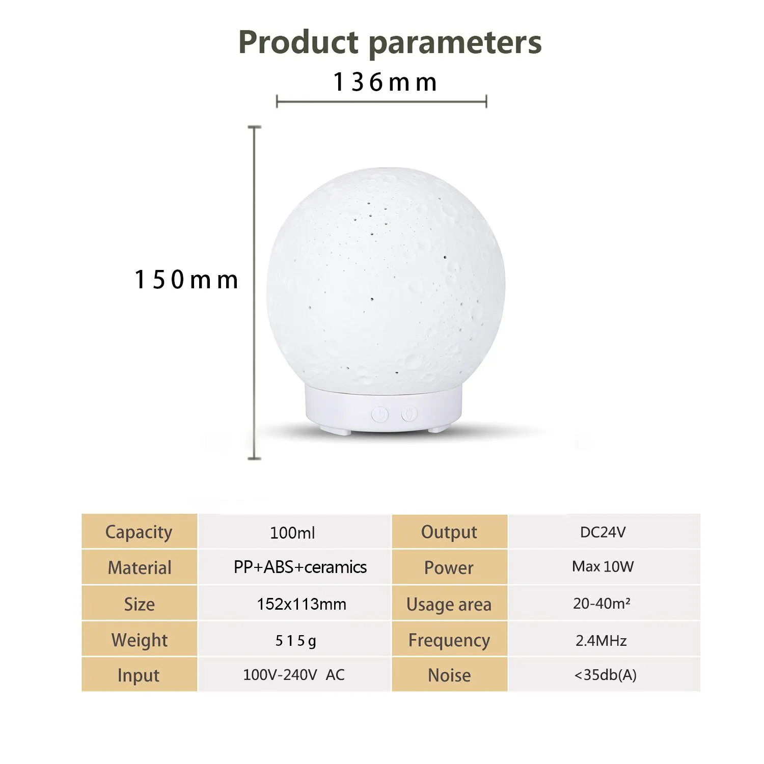 3D Moon Design, Soft LED Lighting & Ultrasonic Aromatherapy