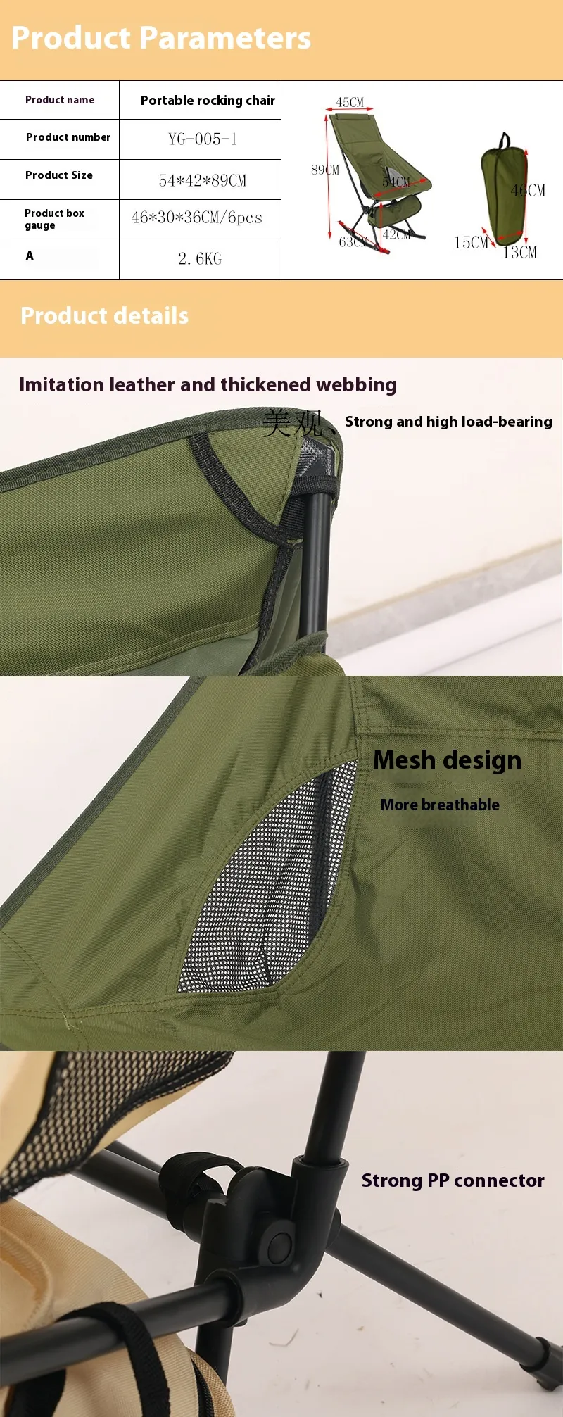 This chair features a unique folding design, making it easy to transport and store, while the high backrest ensures you can sit back, relax, and enjoy your time in nature. With its durable build and stylish design, it's the perfect companion for outdoor activities such as hiking, camping, or simply lounging in your backyard.