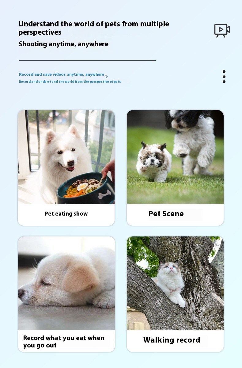 Discover the world from your pet's perspective with the PetVision Pro, the ultimate action camera collar designed for dogs and cats. This innovative product combines advanced technology with user-friendly design to capture and record every moment of your pet's adventures. Whether your furry friend is exploring the backyard, hiking trails, or just lounging around the house, PetVision Pro ensures you never miss a moment.
