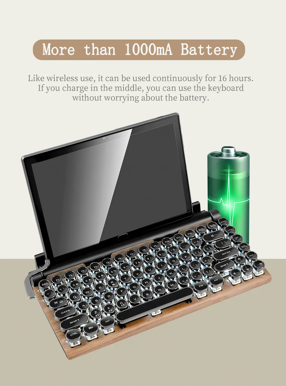 Perfect for writers, retro lovers, professionals, and gamers, this Bluetooth mechanical keyboard brings the best of old and new technology together.
