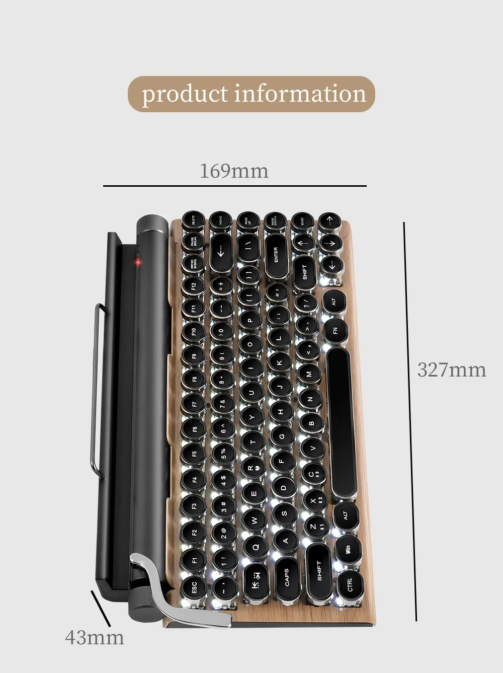 Key Features of the Retro Typewriter Bluetooth Mechanical Keyboard