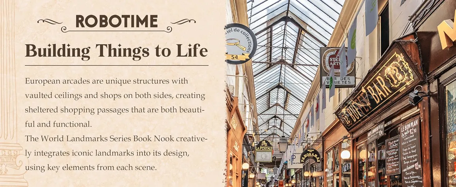 - [DESIGN INSPIRATION] - Inspired by Paris' first covered arcade, this book nook transporting you to the romantic charm of 18th-century Paris. Seamlessly blending iconic architectural elements and artistic finesse, it serves as a sophisticated and functional decor piece that brings charm to any space.