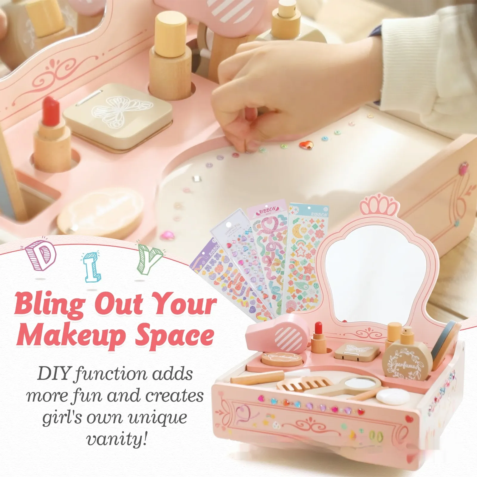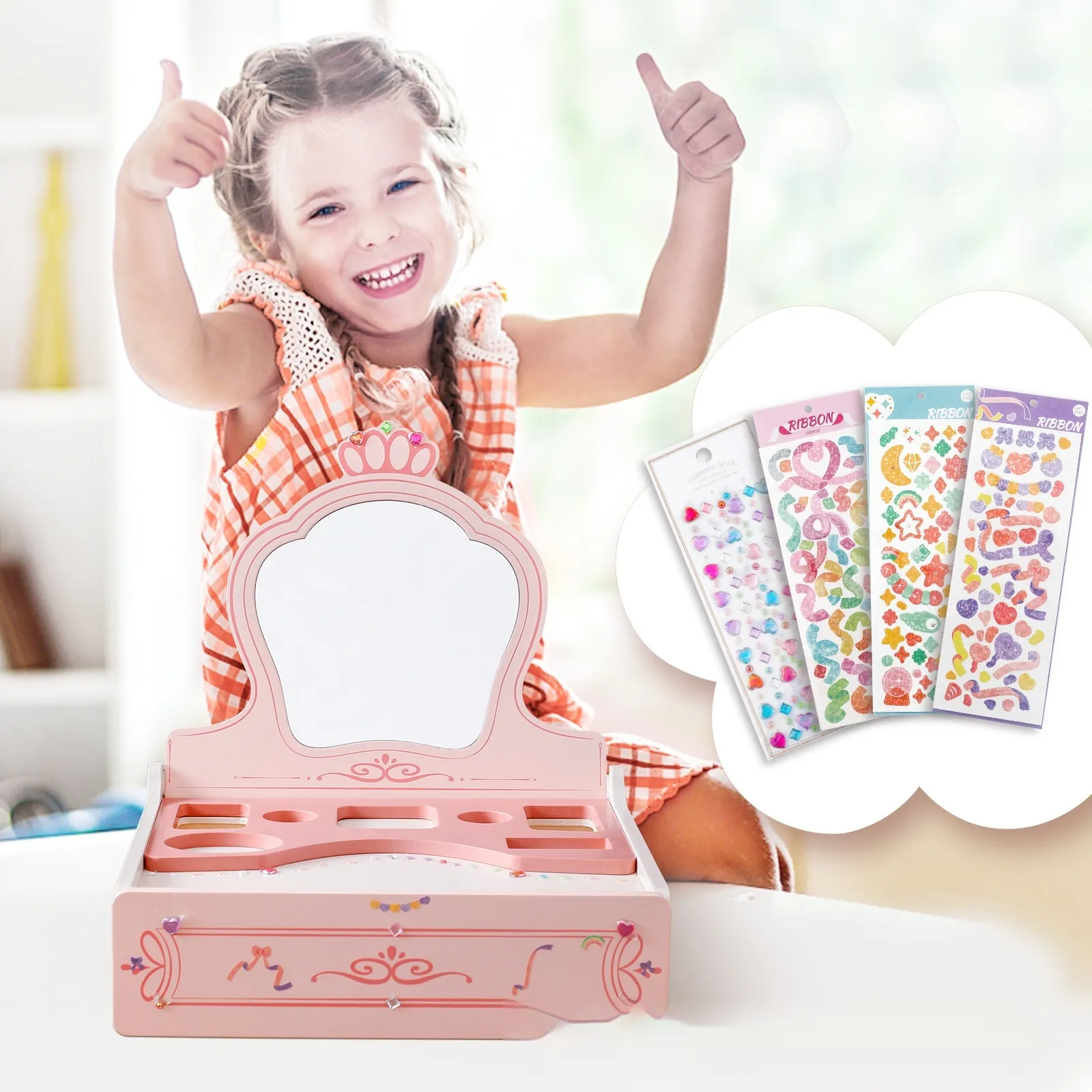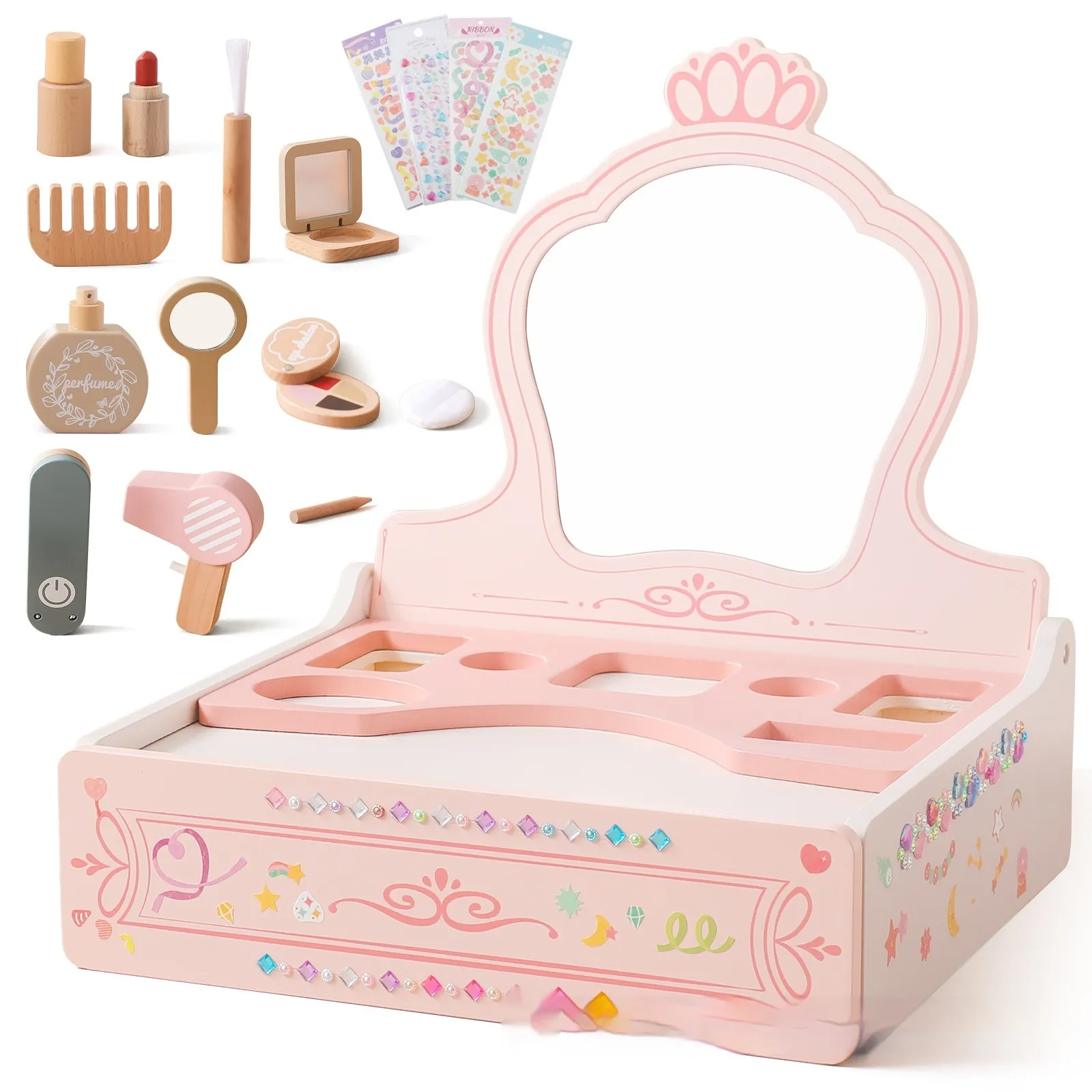 A small dressing table offers a healthy, screen-free activity that promotes hands-on engagement and creativity. As children step away from digital devices and immerse themselves in role-playing and pretend play, they develop important skills like problem-solving, social interaction, and creativity. This makes it a valuable toy for fostering a well-rounded childhood.