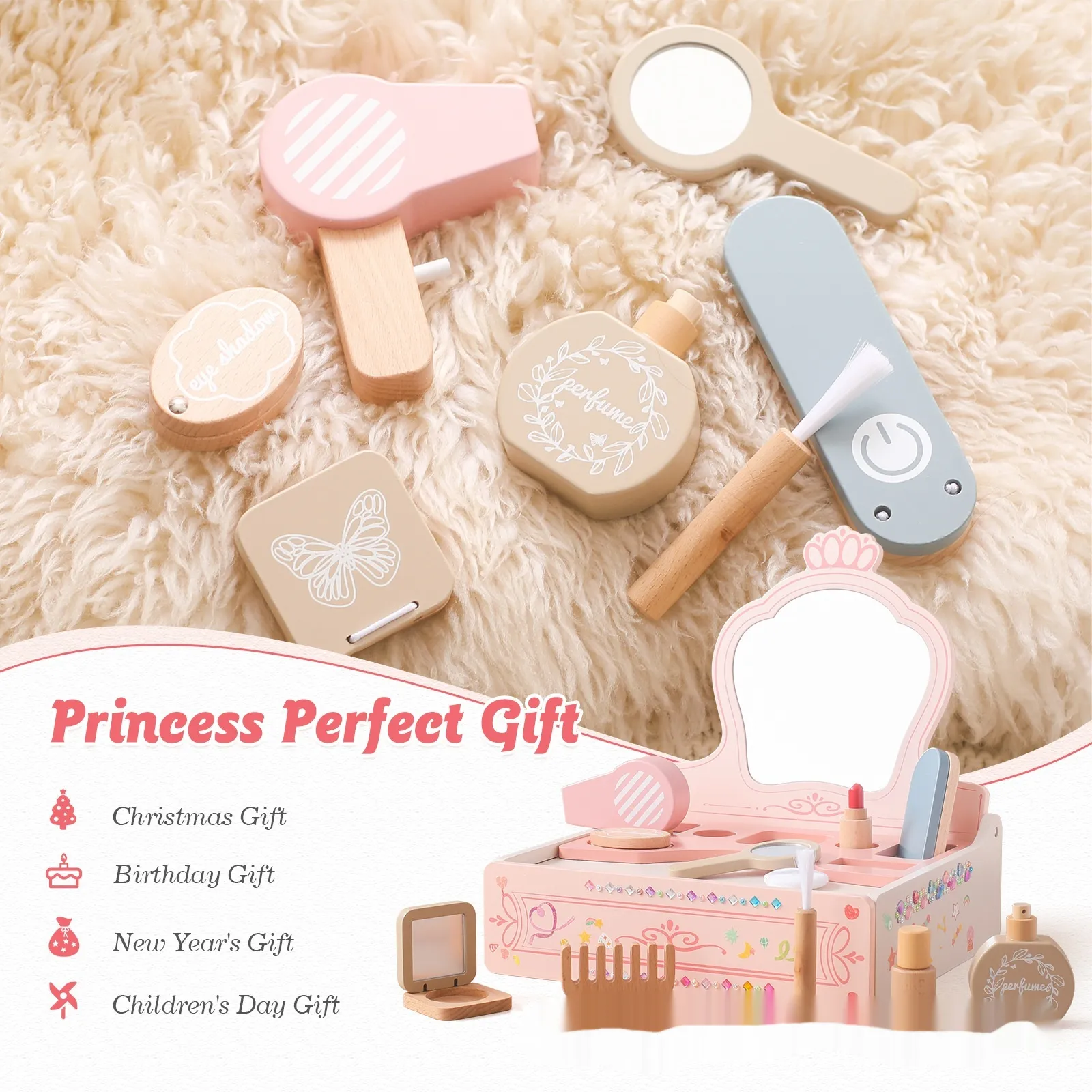 The small dressing table toy is designed specifically for children, with the perfect height and size for little ones to reach and use comfortably. Made from child-friendly materials, it’s built to be sturdy and safe for young hands. The smooth edges, non-toxic paints, and durable construction ensure that it is both safe and practical for children to use every day.
