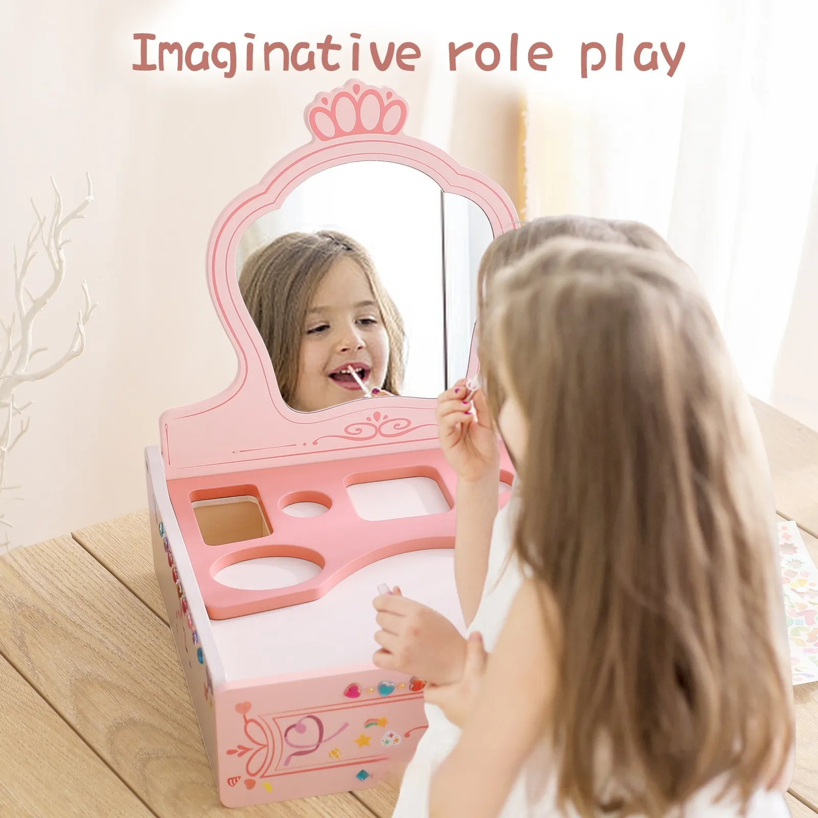The small dressing table serves as a tool for endless imaginative play. Children can create scenarios, experiment with dress-up games, and build stories around their outfits and accessories. This helps develop creativity and cognitive skills as children explore new roles and personalities through imaginative play.