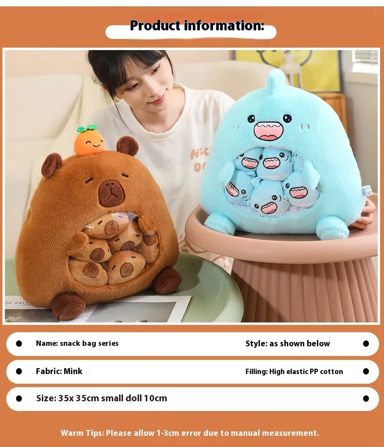 Constructed with high-quality materials and expert craftsmanship, the Snack Bag Capybara Doll is built to last. Its durable construction ensures that it remains a cherished part of your home or gift collection for years to come, maintaining its shape, softness, and functionality through regular use.