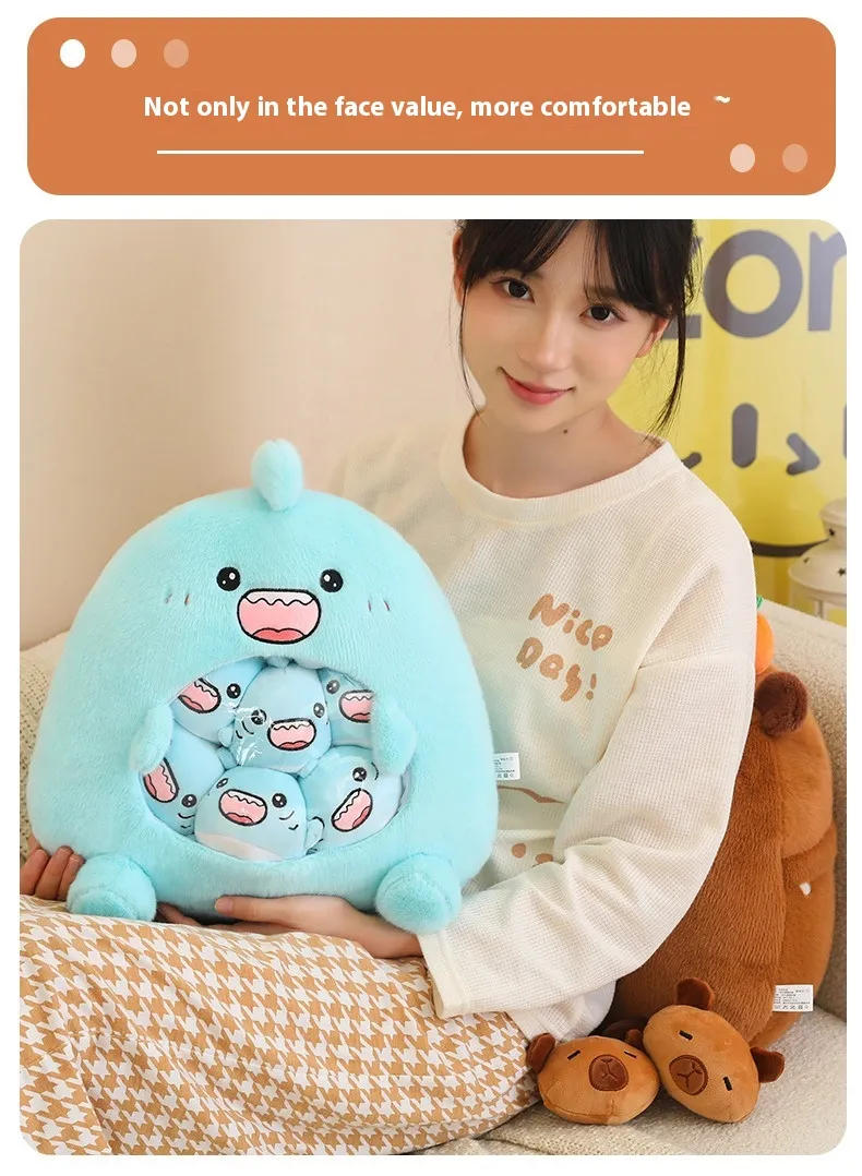 The combination of a plush toy and a decompression pillow offers multiple uses in one product. Whether you need a soft cushion for lounging, a comforting companion, or a convenient storage solution with the integrated snack bag, this multifunctional plush toy provides versatility that caters to different needs and preferences.