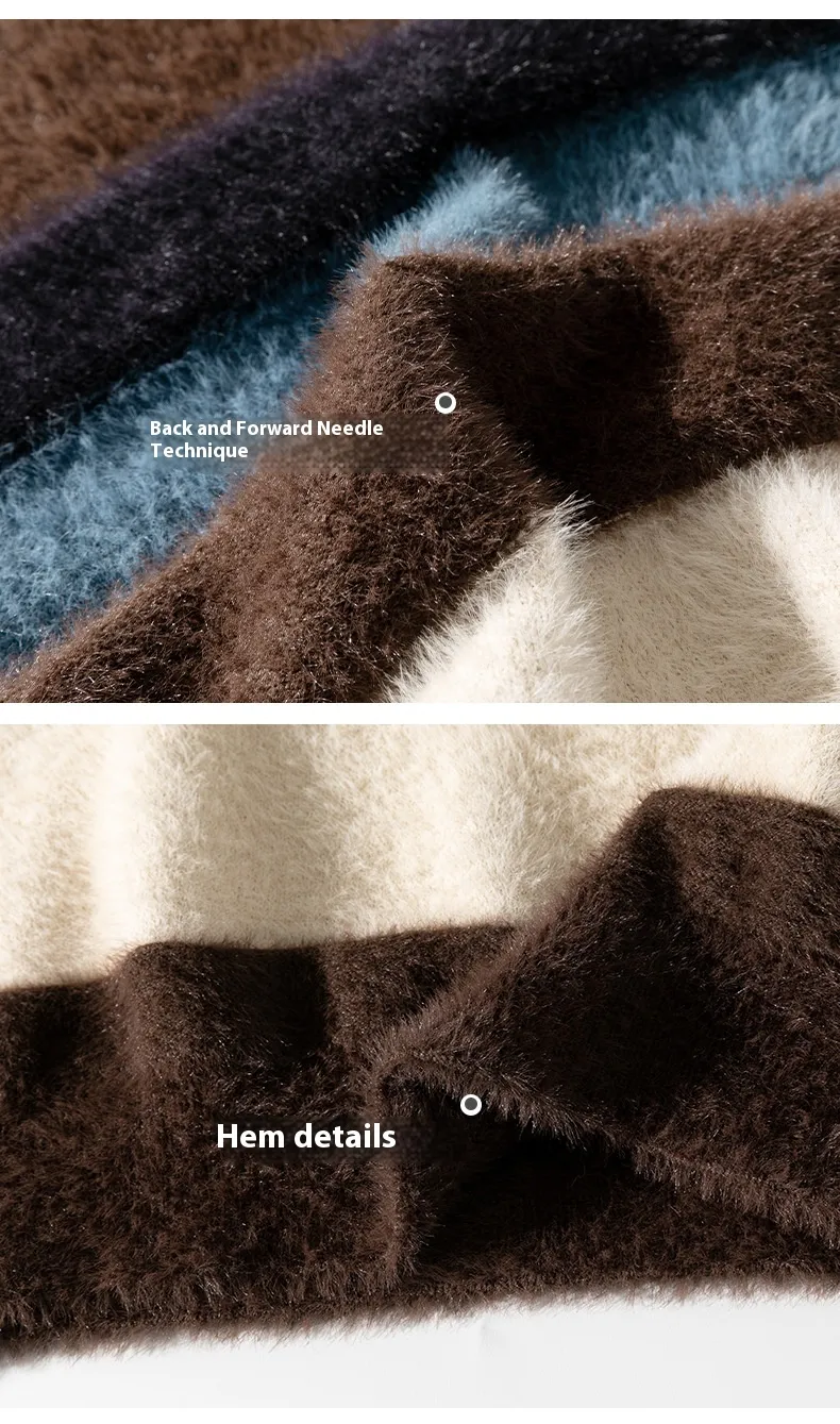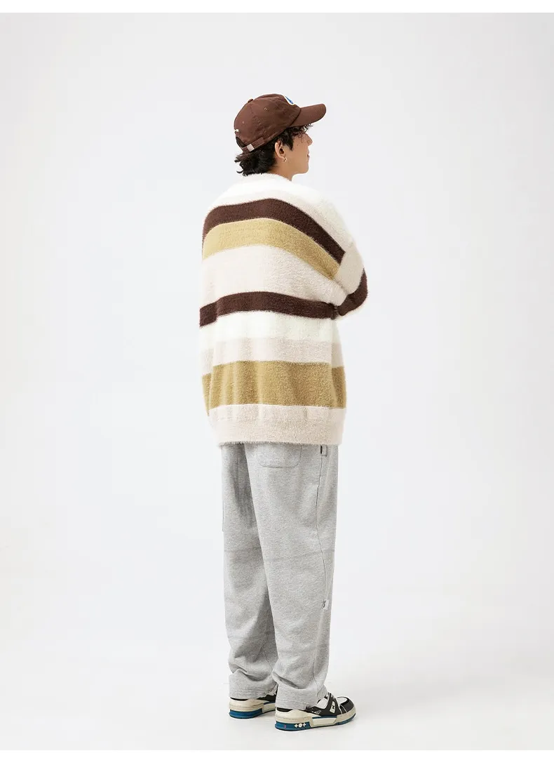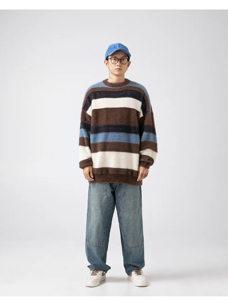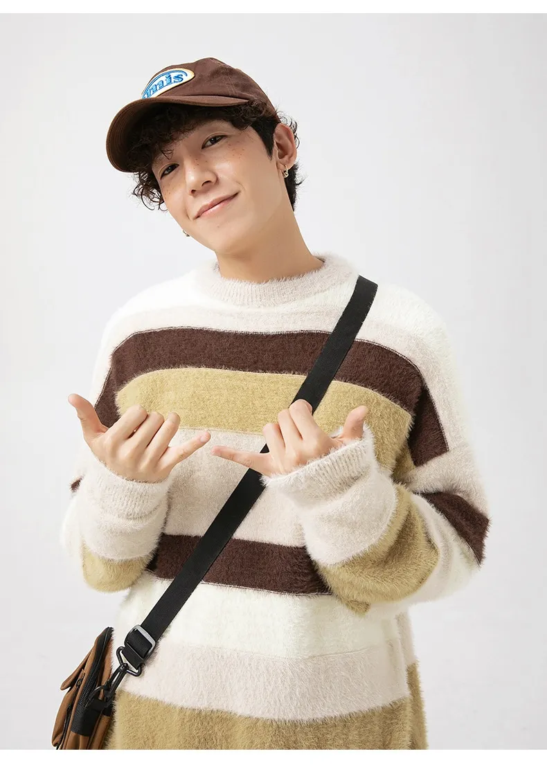 Elevate Your Wardrobe with the Striped Round Neck Sweater: Japanese-Style Retro Mink