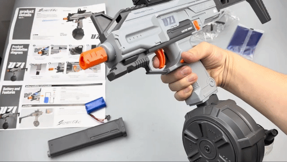 What is Gel Ball Launcher?Gel Ball Launcher is a superior and safe alternative to airsoft, Nerf, super soakers, and paintball because of higher magazine capacity, full-auto fire, long usage time. Comparing to airsoft which uses BBs, Gel Ball Launchers use gel bullets which is filled with water, it provides similar performance in terms of range and accuracy comparing to BBs, but is much more safer and children-friendly.